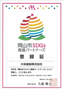 「岡山市SDGs推奨パートナーズ」を利用して、「SDGs宣言」を策定いたしました。